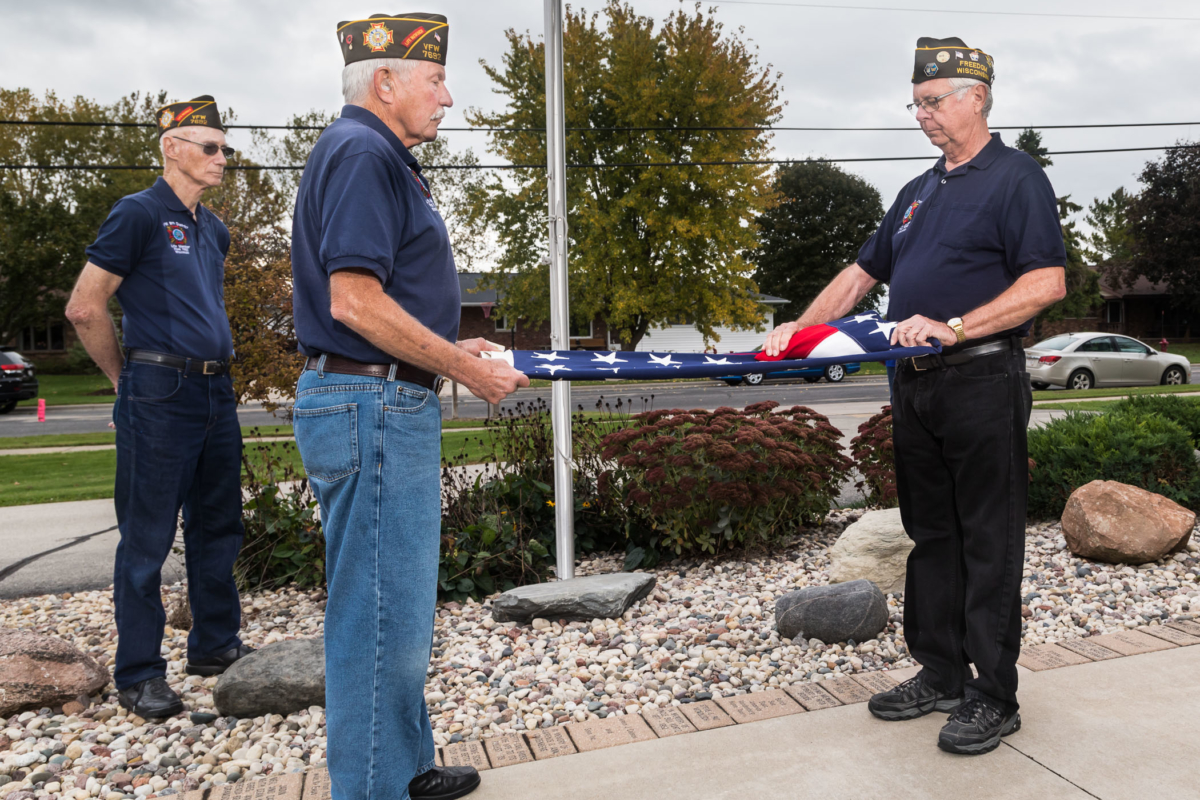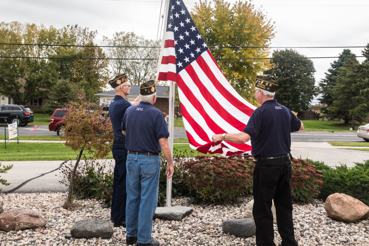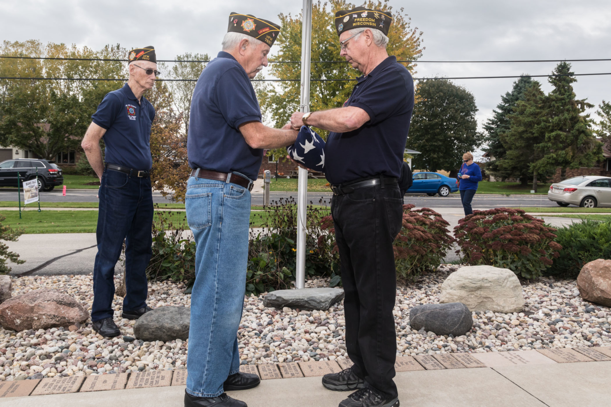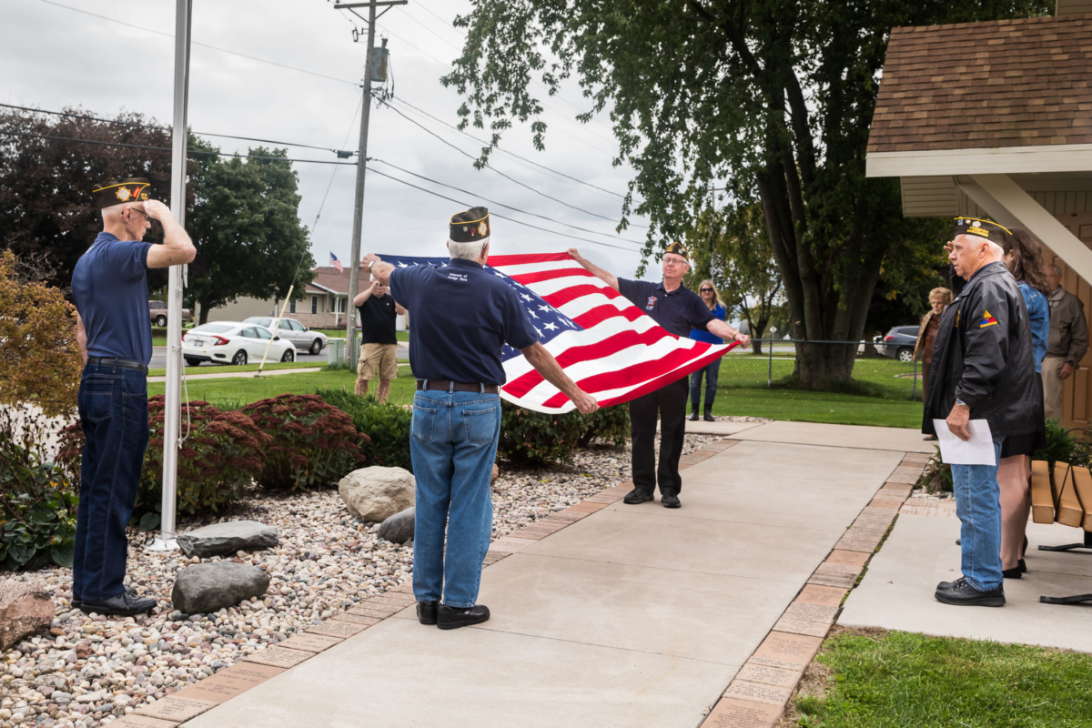 | This 48 star flag shown here was found at a rummage sale. It’s original owner could not be found. On Oct 14, 2017 it was retired at a ceremony by the Freedom VFW post 7692 at the Freedom Area Historical Society where it is on display.